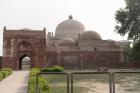 Subject: General view, gateway with northern enclosure wall, domes of mosque in the background