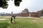 Subject: General view, northern enclosure wall with northwest corner bastion, domes of mosque in background