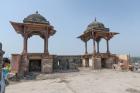 Subject: Domed chhatris of the triple-storied Northwest Gateway (Agra Darwaza) viewed from the terrace