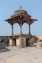 Subject: Domed chhatri on the northeast facade of the triple-storied Northwest Gateway (Agra Darwaza)
