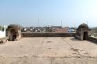 Subject: Domed chhatri of the triple-storied Northwest Gateway (Agra Darwaza) viewed from the terrace