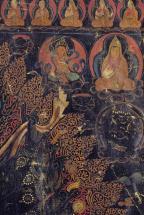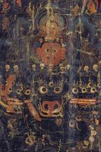 Subject: Upper right portion, many arms of Vajrabhairava; Vajrabhairava, a tantric manifestation of Manjusri, is a form of Yamantaka, conqueror of Yama, the god of death.