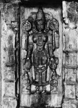 Subject: Jnanasabandar, dancing: An interesting facet of Hinduism on the Tamil-speaking region of south India is the emphasis given to the worship of sixty-three Shaiva saints called nayanmars. The Shaiva saints who lived between the sixth and ninth centuries, were part of a community of holy persons who travelled together across the Tamil countryside, stopping to sing the glories of the deity enshrines at each temple. Through the hymns of the saints, the figure of the distant godhead was humanized. Jnanasambandar heads the list of Devaram singers, his poems on several hundred Shiva temples form the first three books of the sacred Saiva hymns. According to the legend, child Jnanasambandar was once left on the bank by his father. When the father returned, he found the child playing contentedly with a golden cup while trickles of milk ran down his chin, he questioned the source of the cup. By way of answer, the child raised his hand and pointed towards the sky where Uma-Mahesvara appeared to bless both the father and the child. Subsequently the father carried the child on his shoulders from temple to temple with Sambandar singing. Most Saiva temples possess metal images of four Saiva saints-Appar, Sambandar, Sundarar and Manikkavachakar and among these; it is Sambandar who is invariably shown as a child, either standing or dancing. In this image, Sambandar is dancing, one leg lifted, the left arm extended and the right arm pointing up, the image referring to his joyous dance after drinking Parvati?s milk. This is the back view of the sculpted image.