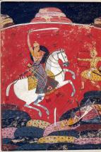 Center portion, Lovers hunting on camel [Maru Ragini: colophon page]