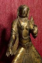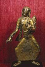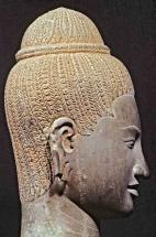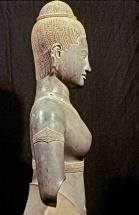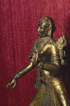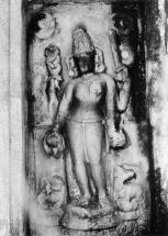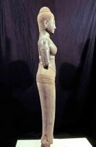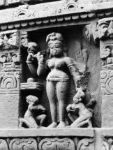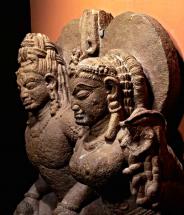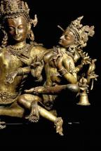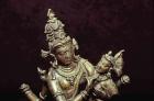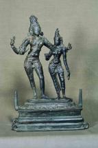 Subject: Ardhanarishvara: The composite figure of Shiva where he is depicted as half male and half female to indicate the shiva-shakti relationship of the unified whole. The right half represents Shiva while the left half represents Parvati. Shiva has the matted locks piled high on his head and leans on his mount, the bull. Parvati's side has a jeweled crown, earring, full breast, broad hips, long skirt, and only one arm.