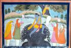 Subject: Krishna marries Satya (or Rukmini); Upper middle portion, Marriage ceremony; Satyabhama, the daughter of Sattrajit, is the third of Krishna's wives