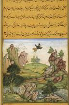 Subject: Kite and dove; The Anwar-i-Suhaili, written by Hussain Ali Waiz, is a Persian version of the Panchatantra; Kite Carries off Golden Dove