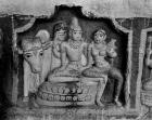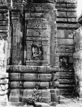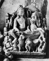 Subject: Sundaramurti Nayanar and Paravai Nachiyar: Saint Sundarar (handsome one) lived in the early years of the eighth century and acquired the epithets of “insolent devotee” and “the lord’s friend” because of the familiar tone toward Shiva that he adopted in his songs. His mode ranges from gentle ridicule through impudence to almost abusive demand. According to the legends, the youthful Sundarar, born of Brahmin parents, stood decked as a bridegroom when an aged man intervened and stopped the wedding, claiming that Sundarar was his bonded slave. Sundarar responded by repeatedly calling him a madman but when papers confirming his bondage were produced and validated by the village council, Sundarar had no choice but to follow his new master. Sundarar is shown with his wife Paravai. As Sundara was bought up by the local chieftain, he is shown with princely attire and as a charming youth well suited to his name, Sundara, the beautiful. This is the back view of the image.