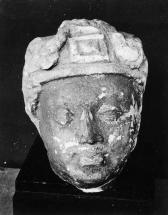 Subject: Architectural Fragment. A sculpture of a Gajasimha that is a mythical hybrid animal or Vyala in Hindu mythology, appearing as a lion with the head or trunk of an elephant. This object has been loaned by the Odisha State Museum.