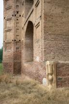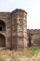 Subject: Engaged turret of the Western Gateway (Lahori Darwaza) with recessed panels and loopholes
