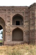 Subject: Detail of right side of the west facade of the Western Gateway (Lahori Darwaza) showing recessed arches on two levels