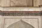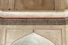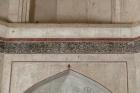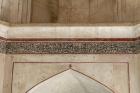 Subject: Detailed view of inscription over arched alcove with perforated screens