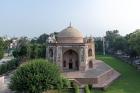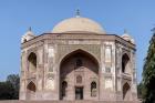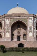 Subject: General view, ornate south face of the octagonal tomb with a central dome, arched iwans, intricate tile work, and corner chhatris set on a raised plinth