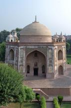 Subject: General view, ornate south face of octagonal tomb with domed top and turret on four sides, inscribed