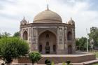 Subject: General view, ornate north face of octagonal tomb with domed top inscribed