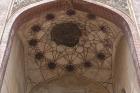Detailed view of glazed tile decoration on the spandrel of alcove