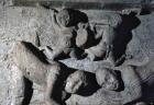 Subject: Gate tower, front side, relief on base (lion killing elephant)