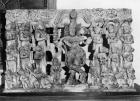 Subject: In order to create a hierarchical feudal aristocracy under the Queen-Empress, coats-of-arms were created for and by the princes and even their nobles. This one shows an ancestral warrior, the god Krishna, and a castle or fort. Just as their British overlords challenged the princes' assumed prerogatives and symbols of power, the princes often challenged plays for power and prestige by their nobles. The Thakur of Dundlod was chastised by the Jaipur durbar for describing his home as a castle rather than a fort. He still kept the address "Dundlod Castle" on his stationery but crossed out "castle" in correspondence with Jaipur. The structure was originally built in 1750 as a fort and not used as a residence until 1809. Today it is both a residence and a hotel. [Coat-of-Arms of a Thikana (estate) within Jaipur]