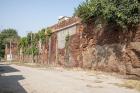 General view showing remains of sarai cells with double-storied wall facade in the background