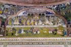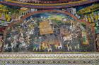 Subject: Murals in Maharaja Suraj Mal's cenotaph, from left to right: Krishna & Radha playing holi, a durbar scene, Krishna pacifying angry Radha