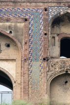 Subject: Right side of the tile-inlaid frame with geometric motifs around the central passageway of the Southern Gateway (Delhi Darwaza)