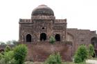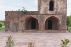 Subject: General view of the double-storied mosque within the sarai, east facade with a triple-arched opening and a domed top