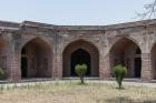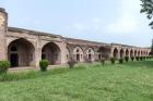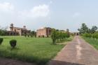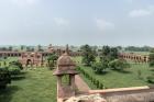 Subject: General view of the east face of the triple-storied Western Gateway (Lahori Darwaza) with the mosque in the foreground, as seen from the roof of the Eastern Gateway.