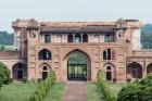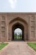 Subject: Pishtaq of the east gateway of the mosque, arched central passageway (interior), ornate west doorway, east face, leading to the enclosed forecourt fronting the liwan