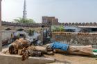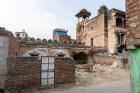 Remains of the sarai cells to the left of the triple-storied Northwest Gateway (Agra Darwaza)