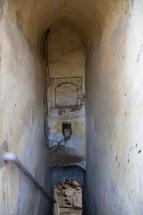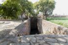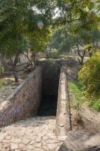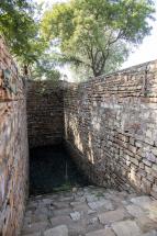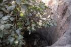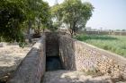 Retaining walls around an enclosed stepped passage leading down into the well shaft