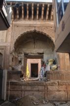 View of the haveli courtyard with the ground-floor rooms now occupied