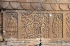 Upper arcade of scalloped arches supported by columns, topped with projecting stepped brackets
