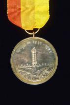 Subject: One of the inscriptions on the back is "Friendship with London" and six of the twenty-five nine carat gold medals were awarded to British men and women. These medals were manufactured by Cooke & Kelvey, Calcutta. [World War II victory medal depicting the Jaya Stambha [Victory Tower] of Chitor, erected by Rana Kumbha in the 15th c. ]