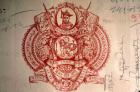 Subject: Depiction of Ganesha and state coat-of-arms from Sawai Maharaja Bhopal Singh for the 1926 marriage of his granddaughter to the son of the Taluqdar of Bhadri, District Pertabgarh (Oudh). [Crested Wedding Invitation]