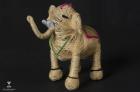 Subject: Narayana on Elephant. A figure of Narayana on elephant who is identified with Lord Vishnu and is considered Supreme being in Vaishnavism, made in cow dung. Cow dung, over centuries, has been used for making toys as an inexpensive alternative to wooden and metal toys. A lump of mixture of clay and cow dung is shaped and smoothened with a coat of chalk and then painted. These lightweight toys are generally coarse in design and lack detailing and ornamentation. This object has been procured by Utkalika, Odisha State Co-operative Handicraft Corporation Ltd.