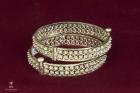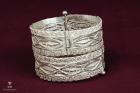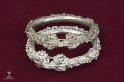 Subject: Dhokra Deepa. The lamp has four tiers of lamps. The first tier at the bottom supports eight lamps, the second and third tiers support six lamps each and the fourth tier at the top supports two lamps. The lamp is lit with a cotton wick dipped in ghee or vegetable oils used during prayer rituals. At the bottom of the lamp there is a figure of an elephant and a motif of a bird on top. Front view of the lamp. This object was procured from State Institute for Development of Arts & Crafts (SIDAC) Show House.