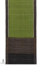 Subject: Nabakothari khandua Saree. The 'nabatkothari' saree has nine square segments placed in a linear way across the body that contain nine different designs like, lotus, elephant, temple, peacock, pot, lion, conch, butterfly and deer in one line and another nine in the other line. This is a single ikat saree with a red and green color scheme. This object was procured from Boyanika (Odisha State Handloom Weavers Cooperative Society Ltd).