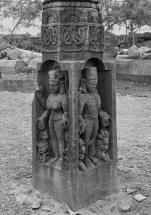 Subject: 4-sided pillar in front of temple, Parvati and Visnu standing
