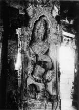 Subject: 4-sided pillar in front of temple, Parvati doing penance