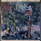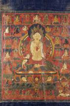 Subject: Sangita-Mandapa; Painted ceiling; Scenes from the life of Krishna (top to bottom): 1. Kamsa and his consort Jivadyasa; Devaki being married to Vasudeva; birth of Krishna 2. Baladeva removing the child from the chamber of nativity; Vasudeva holding a white umbrella over the child; the presiding deity of the city, in the form of a bull, showing Baladeva the way; the city gate opened; the river Jumna divided and gave him way; Baladeva delivering the child unto the care of Nanda Gopa 3. sports of Krishna and the annihilation of seven evil sprits sent by Kamsa-the seventh evil spirit that came as a woman offering Krishna milk from her breasts smeared with poison; subjugation of the deva Arishta, who came as a bull to test Krishna's strength; Devaki, Baladeva and Vasudeva arriving just then on the scene, and Devaki admiring her son with motherly love, milk flowing out of her breasts spontaneously.